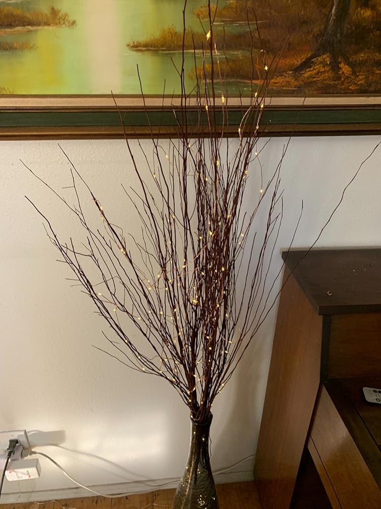I absolutely love these lights. I have purchased three sets and will be getting more. The vase shown has one set (the longer one). Two things that push this set above other fairy lights is the long length of the cord from the first light to the plug in, which means I do not have to have an extension cord. The second great feature is the ability to use a USB Power Bank instead of electricity. Initially, I had some problems getting it to work, but the company quickly answered all my questions. It now works great. However, I cannot use the lights on the two dimmest settings because the Power Core will shut off due to energy use being too low. Also, my Power Core happens to automatically turn itself off when detecting a low output. I can override it by holding the power button on for about three seconds.