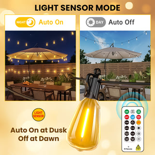 - 100+10FT LED Outdoor String Lights with Smart Light Sensor